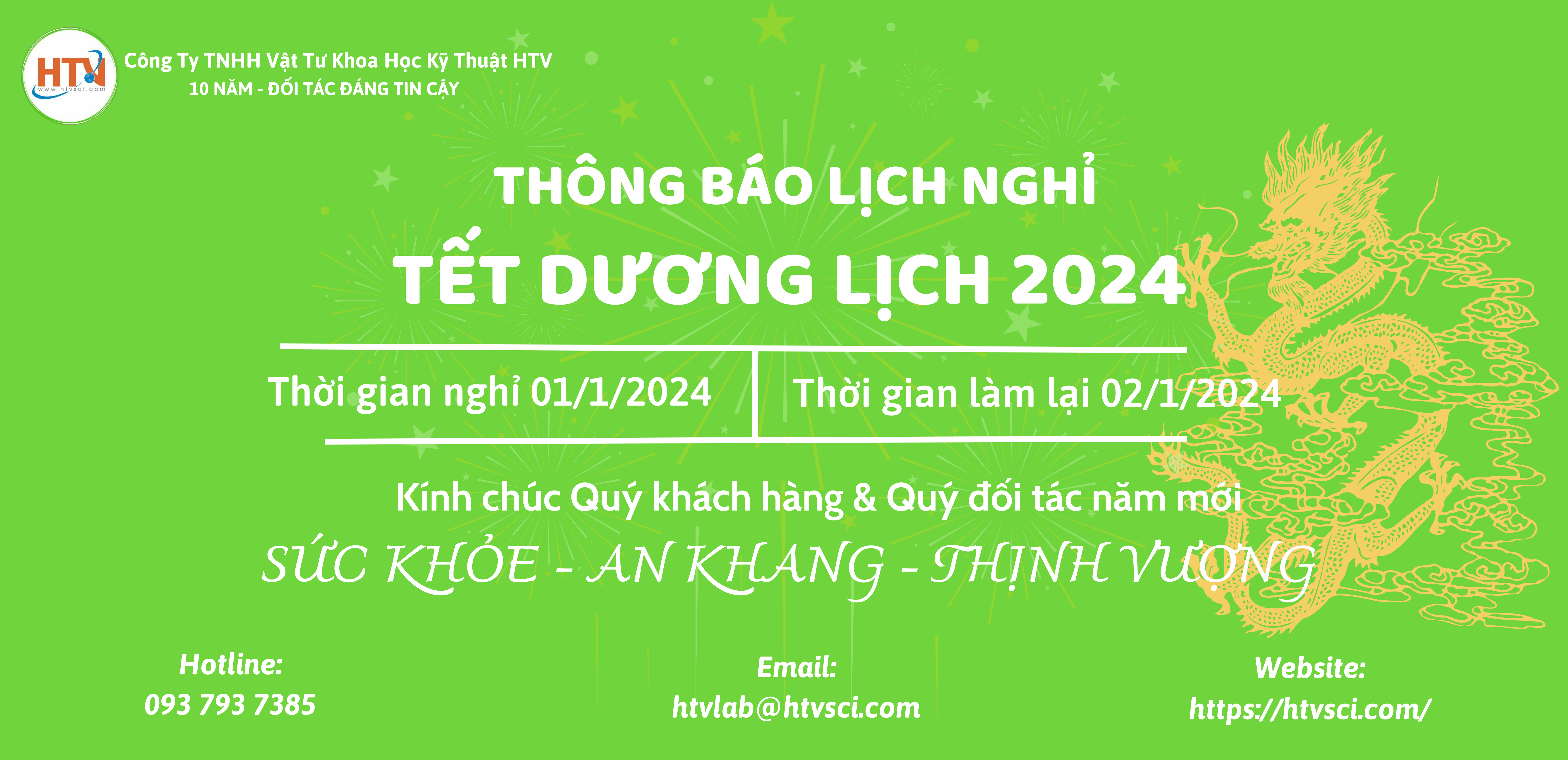 Công ty TNHH Vật Tư Khoa Học Kỹ Thuật HTV trân trọng thông báo lịch nghỉ tết dương lịch 2024 đến Quý khách hàng như sau: