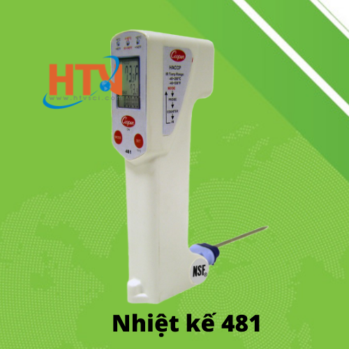 Nhiệt kế hồng ngoại 481 hay Nhiệt kế laser 481 được thiết kế 2 trong 1 có thể đo nhiệt độ bề mặt và nhiệt độ bên trong thực phẩm với đầu dò RTD. Nhiệt kế hồng ngoại 481 có đèn báo màu xanh và màu đỏ để báo hiệu thực phẩm có trong vùng an toàn trong kiểm tra HACCP. Nhiệt kế laser 481 với khả năng chống nước IPX65 cùng các tính năng trên tạo thành thiết bị đo nhiệt độ tốt nhất cho ngành thực phẩm.