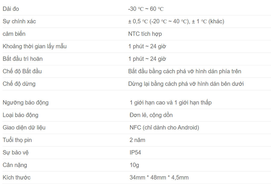 | ► Thiết bị tự ghi TI-1S | -30℃~60℃ / -22℉~140℉ | ±0.5℃ (-20℃~40℃), ±1℃ (t° khác) | 24 tháng |
