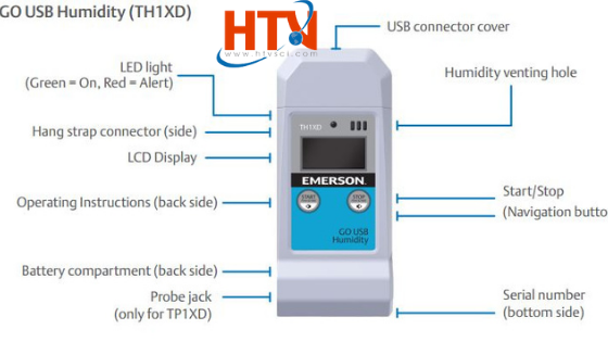 Thiết bị ghi nhiệt độ, độ ẩm Go USB Humidity (TH1XD) là một trong ba bộ sản phẩm GO USB Logger mới của Emerson. Thiết bị có thể lập trình và tái sử dụng được sử dụng đo nhiệt độ, độ ẩm môi trường xung quanh giám sát các sản phẩm dễ hư hỏng trong quá trình vận chuyển.