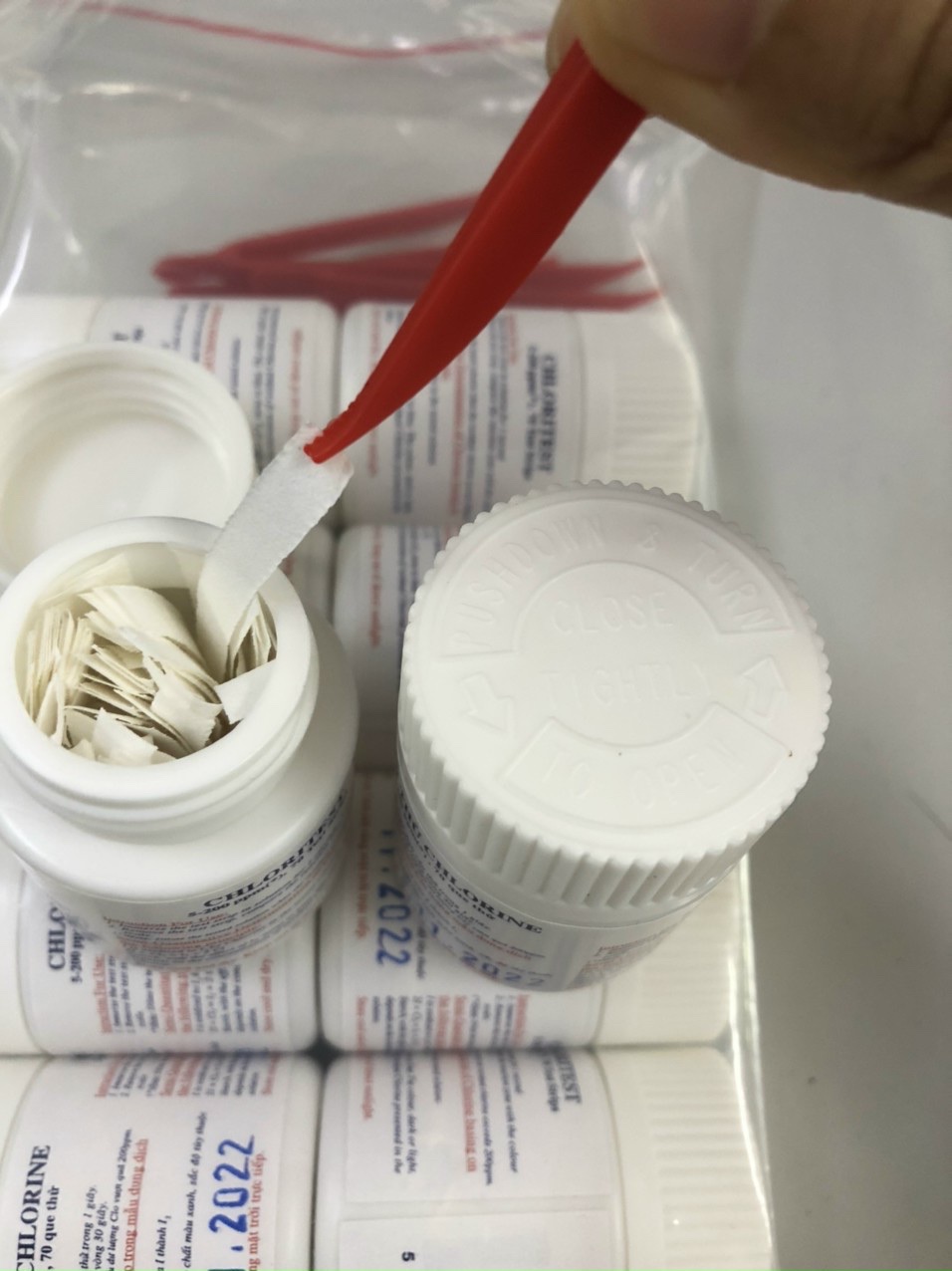 - Bước 2: Lấy giấy thử clo ra và so với bảng màu đọc kết quả trong 3 giây.