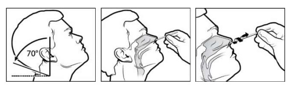 - Nhẹ nhàng đưa đầu que lấy mẫu qua lổ mũi sâu khoảng 1/2 khoảng cách từ đầu mũi đến dái tai). Xoay que 3 lần và giữ yên 10 giây