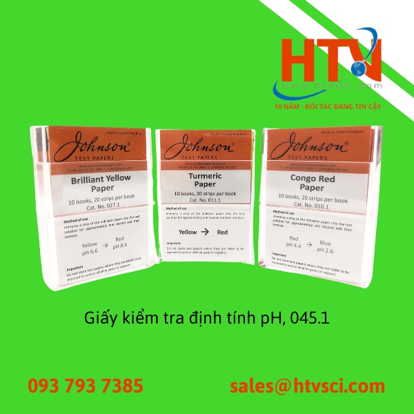 Bạn có thể mua test nhanh định tính pH 045.1 của JOHNSON tại Công ty TNHH Vật Tư Khoa Học Kỹ Thuật HTV – nhà phân phối chính hãng của JOHNSON Test Papers tại Việt Nam.