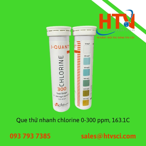 Test nhanh chlorine 163.1c của Johnson được sử dụng kiểm tra nhanh hàm lượng chlorine tự do nước, trong thực phẩm cũng như trong dung dịch trong khoảng 0-300 ppm. Test nhanh chlorine được đóng gói nhỏ gọn, thời gian cho kết quả nhanh trong vài phút, không cần thiết bị đi kèm. Test kiểm tra nhanh chlorine được sử dụng nhiều trong các lĩnh vực thực phẩm, kiểm tra chất lượng nước, trong giáo dục...