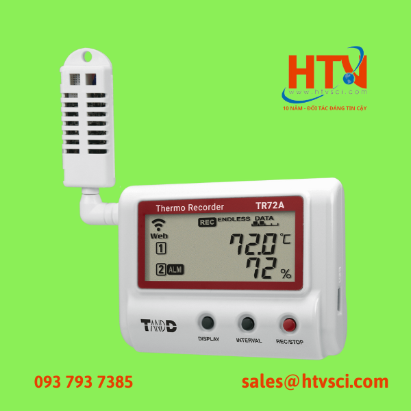 Nhiệt ẩm kế tự ghi TR-72A, là thiết bị theo dõi nhiệt độ và độ ẩm theo thời gian tùy chỉnh. Máy ghi nhận nhiệt độ TR-72A được sử dụng trong kiểm tra nhiệt độ và độ ẩm nhà xưởng và kho hàng thông qua đầu dò THA-3001. Dữ liệu từ thiết bị TR-72A được truyền cloud thông Wireless LAN, USB, Bluetooth 4.2 giúp người dùng kiểm soát nhiệt độ ở bất kỳ nơi đâu.