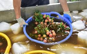 Bà con nên chuẩn bị sẵn các vật liệu và một số loại hoá chất gồm có a-xít clohydric (HCl) hoặc NaHSO3, bể nhúng, quạt gió, rổ nhựa... Trước tiên, bà con pha 60 gam NaHSO3 trong 1 lít nước sạch, khuấy đều cho tan hết. Sau đó, nhúng từng bó hoặc cả rổ nhựa vải quả vào dung dịch NaHSO3 trong thời gian 10 phút . Dung dịch NaHSO3 có tác dụng làm cứng vỏ quả, hạn chế mất nước, tiêu diệt và chống vi khuẩn, nấm bệnh xâm nhập gây hại quả. Vớt ra nhúng tiếp vào dung dịch HCl 4% khoảng 2 - 5 phút. Dung dịch HCl có tác dụng hãm màu, giữ cho vỏ quả tươi nguyên, tăng thêm giá trị thương phẩm.