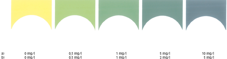 - Sau 5 phút, đối chiếu màu của dung dịch với bảng màu.
