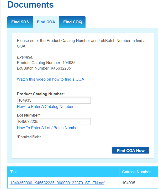 HƯỚNG DẪN CÁCH TẢI COA VÀ MSDS HÓA CHẤT MERCK