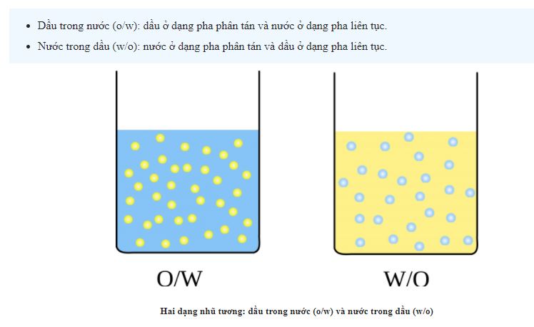 Nước trong dầu: trong đó nước là pha phân tán, dầu là pha liên tục