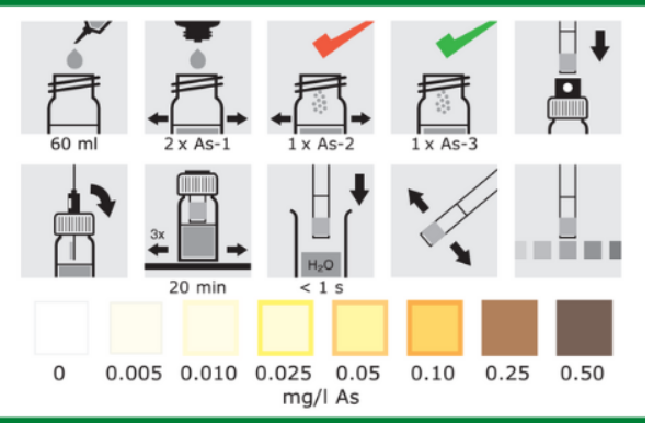 Dùng kiểm tra asen hóa trị III và V trong nước uống, asen trong nước khoáng, asen trong suối, asen trong nước giếng, asen trong nước ngầm và nước mặt. |