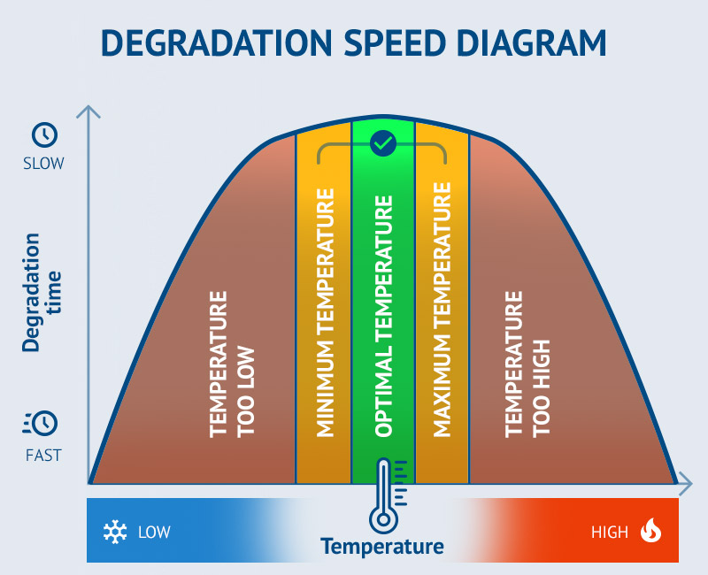 Mặt dù các phạm vi nhiệt độ được bảo quản này rất đơn giản, nhưng ảnh hưởng của nhiệt độ “vượt ngưỡng” (thời gian mà nhiệt độ nằm ngoài phạm vi của nhà sản xuất khuyến cáo) – hay gọi là giá trị MKT