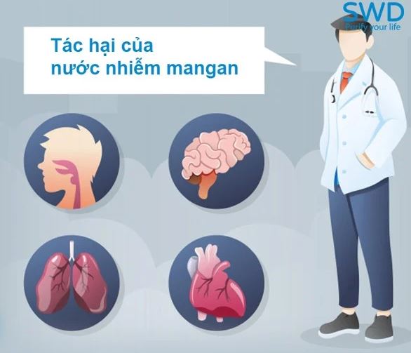 Mặc dù không gây ra các tác động trực tiếp đến sức khỏe con người, nhưng nếu tiếp xúc, ăn uống, sử dụng nguồn nước có nhiễm Mangan trong thời gian dài cũng để lại những hậu quả xấu, đặc biệt là đối với hệ thần kinh.