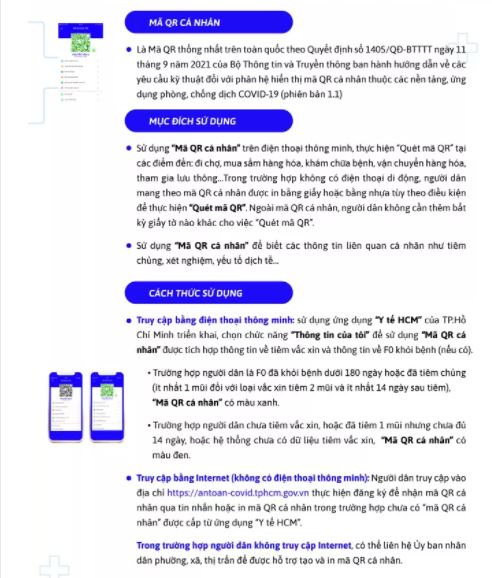 Phó Giám đốc Sở Thông tin và Truyền thông TP HCM Võ Thị Trung Trinh cho biết nhằm phục vụ kế hoạch thích ứng an toàn, linh hoạt và kiểm soát hiệu quả dịch Covid-19 tại thành phố từ ngày 1-10, Sở đã phối hợp với Sở Y tế, Cục Tin học hóa - Bộ Thông tin và Truyền thông tiến hành khai thác dữ liệu, tích hợp mã QR với các thông tin về tiêm vắc-xin, xét nghiệm, F0 phục hồi trên ứng dụng Y tế HCM.