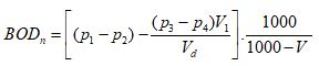 Tính toán nhu cầu oxy sinh hóa sau n ngày (BODn), tính bằng miligam trên lít oxy dùng công thức sau: