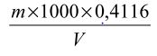 V là thể tính phần mẫu thử, tính bằng mililit, (xem 6.1);