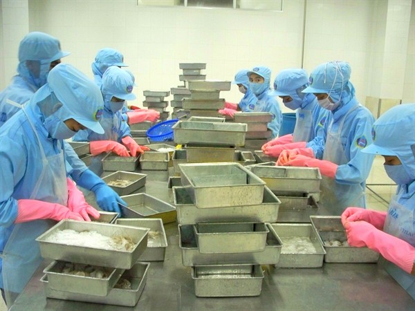 Mục đích của khâu phân loại nhằm loại bỏ những con tôm không đủ tiêu chuẩn chế biến.