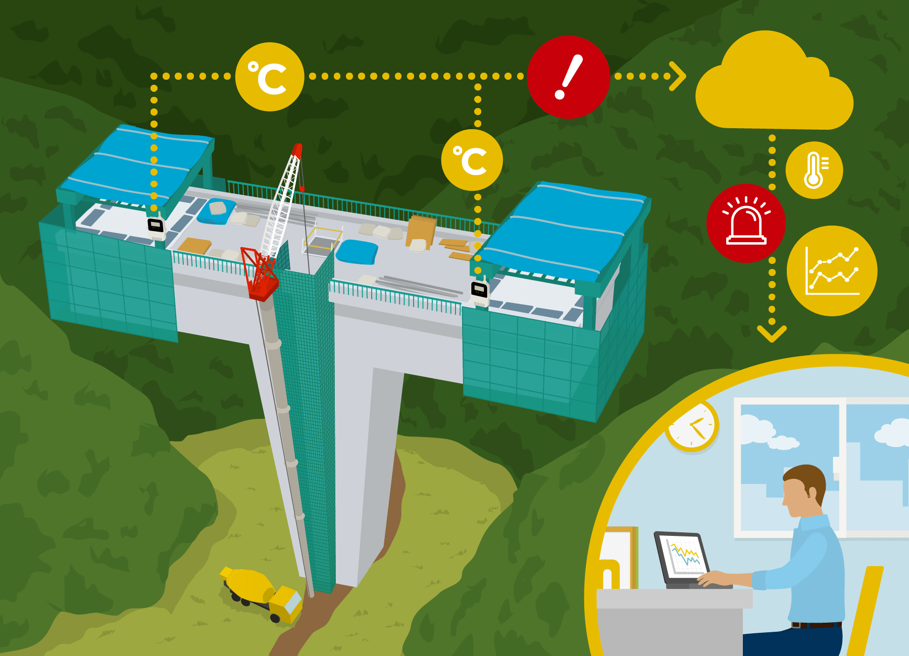 TRONG LĨNH VỰC XÂY DỰNG, Nhiêt ẩm kế tự ghi giám sát nhiệt độ từ xa khi bảo dưỡng bê tông